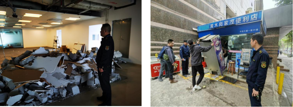 今年年初,华富街道执法队加大对群租房、架空层等领域的治理宣传力度,普及违法建设的负面影响,发动群众积极参与到防违控违工作中来,呼吁群众发现违法建设行为及时举报。2月初,华富街道执法队共接到群众举报投诉4条,经执法队员现场核实违建位置及周边环境为2条属实,其中一处位于某商业楼的避难层,某公司通过违规加建,分隔空间形成办公场地,该处违建面积达1052.42平方米。另一处为某大厦一层的小卖部商铺,据现场执法人员介绍,此处违建是当事人未经审批擅自建设临时铁皮房导致的,经测量,临时违建铁皮房长3.78米,宽2.97米,面积11.23平方米,存在极大的消防安全隐患。根据相关法律法规,执法人员给违建行为人分别开具了法律文书。
