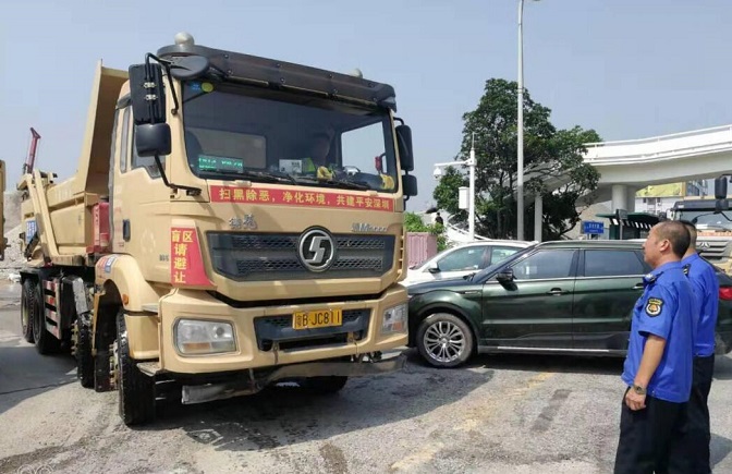 8月9日,全市统一开展第十一次泥头车专项整治行动。华富街道执法队依照上级文件要求,在笋岗西路、莲科一路设点,对过往工程运输车辆进行检查。近一个月内,华富街道执法队针对工程运输车辆开展的第三次专项行动,华富街道执法队共设点5个,主要就车体是否整洁、轮胎是否带泥、容仓是否密闭等对23辆泥头车进检查,对一辆沿途泄漏污染道路的泥头车进行处罚。