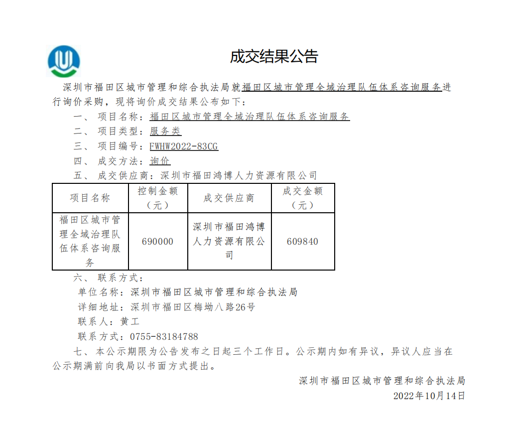 快三平台 城市管理和综合执法局关于快三平台 城市管理全域治理队伍体系咨询服务成交结果公告