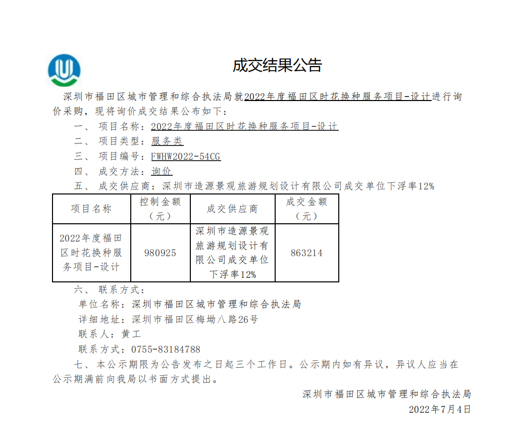 快三平台 城市管理和综合执法局关于2022年度快三平台 时花换种服务项目-设计成交结果公告