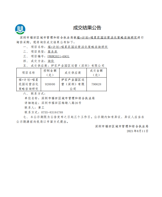 快三平台 城市管理和综合执法局关于福+计划-喵星花园运营活化策略咨询研究成交结果公告