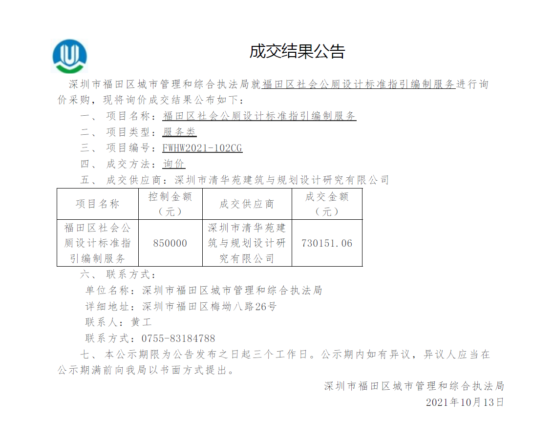 快三平台 城市管理和综合执法局关于快三平台 社会公厕设计标准指引编制服务成交结果公告