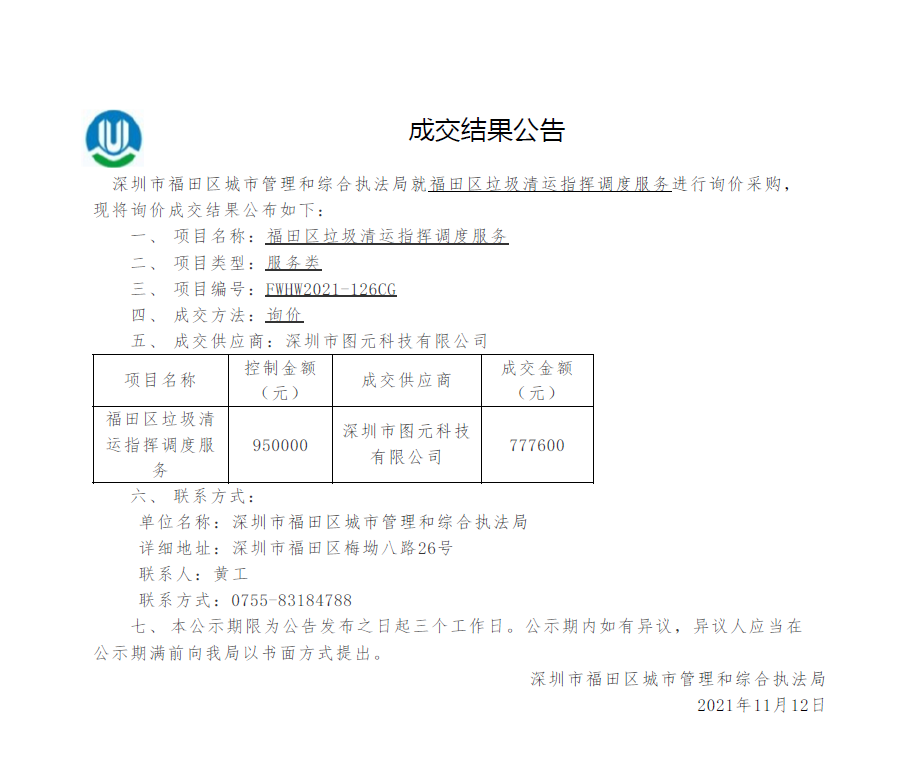快三平台 城市管理和综合执法局关于快三平台 垃圾清运指挥调度服务成交结果公告