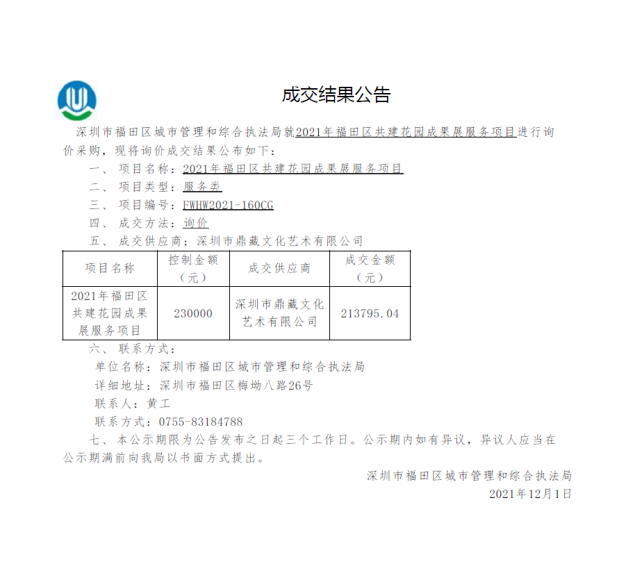 快三平台 城市管理和综合执法局关于2021年快三平台 共建花园成果展服务项目成交结果公告