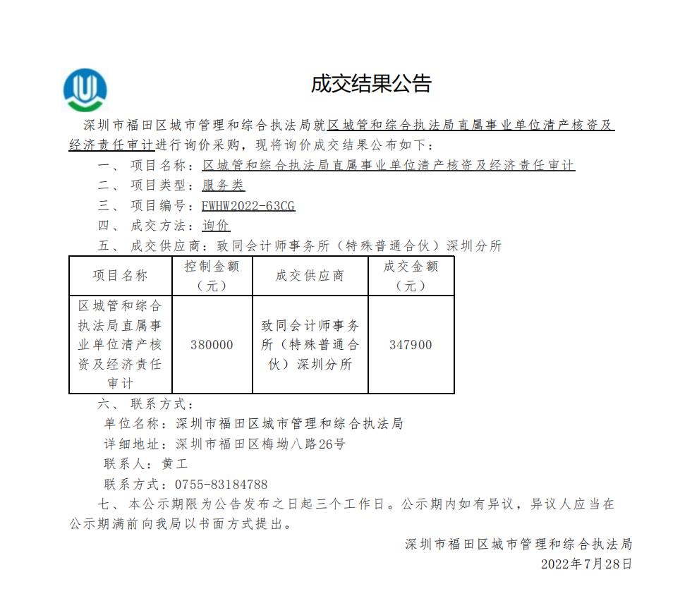 快三平台 城市管理和综合执法局关于区城管和综合执法局直属事业单位清产核资及经济责任审计成交结果公告