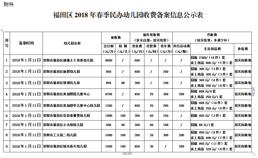 附件:快三平台 2018年春季民办幼儿园收费备案信息公示表