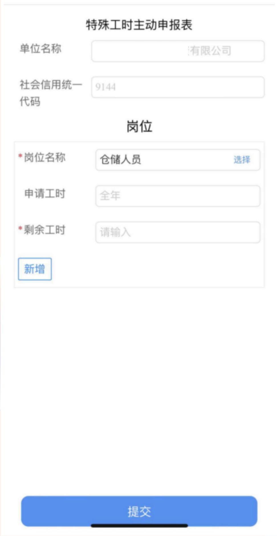 6.审批通过的企业,填写单位名称和统一社会信用代码,申办表单时候填写的岗位名称会自动跟随。