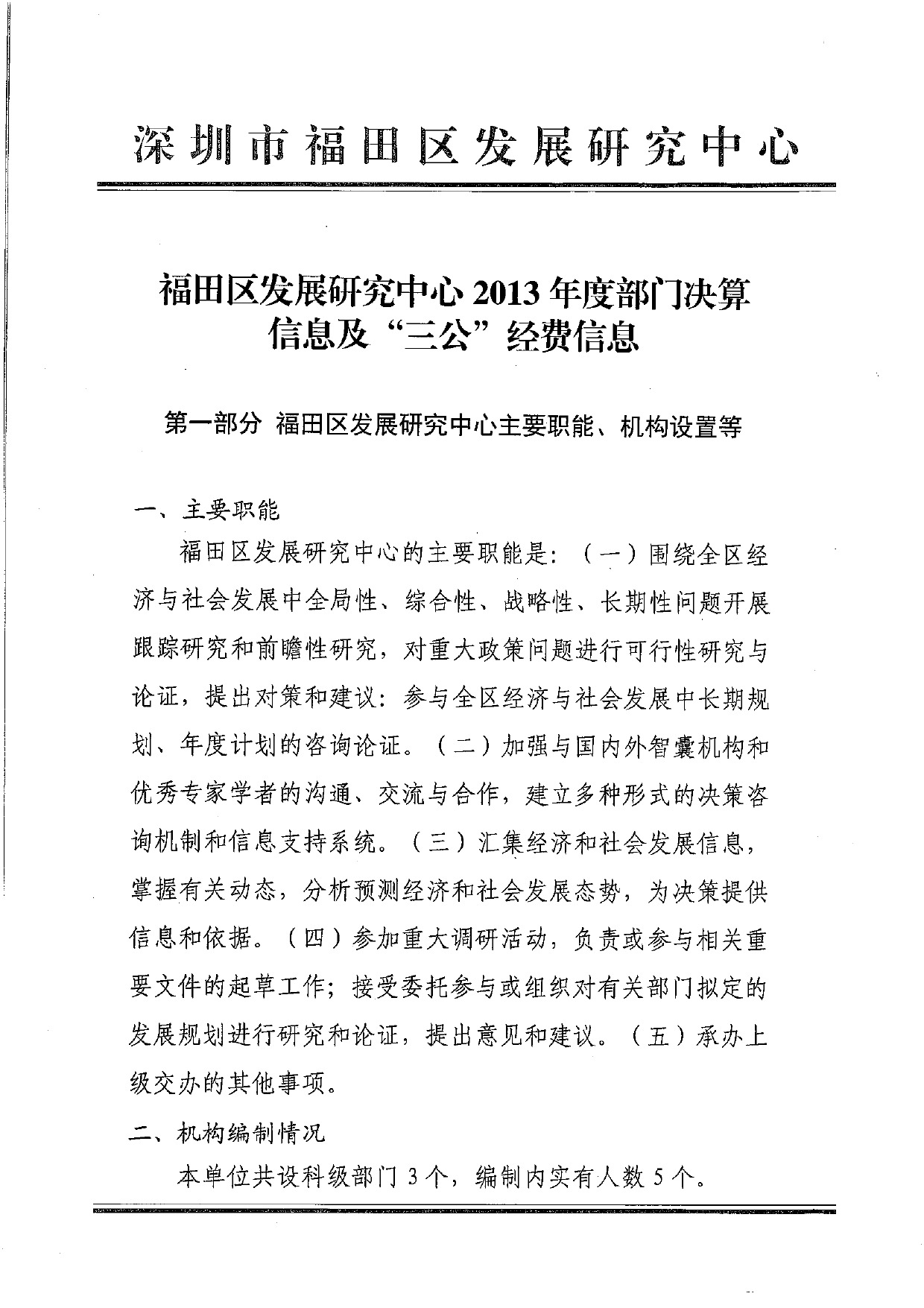 快三平台 发展研究中心2013年度部门决算信息及“三公”经费信息