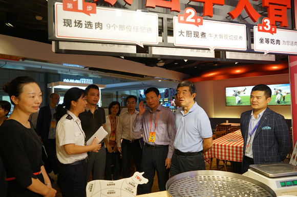 11月1日上午,区人大常委会党组成员、副主任张尊众带队视察“开展‘舌尖上的安全’专项行动,完成食品安全抽检600批次以上,实现餐饮单位量化A级率达30%”民生实事项目办理情况。视察组一行先后来到了位于怡景中心城的西贝莜面和汉拿山后厨,重点观看了几个重点品种的食品安全抽检工作。随后召开座谈会,会上代表们听取了市市场监督管理局福田监管局关于民生实事进展情况汇报。该项民生实事办理部门高度重视,前期对全区食品安全状况进行摸底调查,掌握全区1000平以上餐饮单位底数和食品安全管理水平,找出监管薄弱环节和风险点;有针对性地制定抽检方案并进行公开招投标,最后选择有资质有实力的第三方公司来承接本项目。食品安全抽检覆盖10个街道和多项重点食品种类,目前已完成239批次的食品安全抽检,预计11月11日能完成600批次。目前全区206家大型餐饮单位经指导提升后达到A级的有39家,按照30%的目标还有23家有待整改提升。