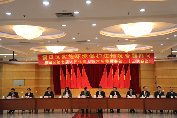 专题询问现场,区人民政府书面报告了《环保法》实施情况。随后,区人大常委会组成人员、区人大代表聚焦突出问题、焦点问题,就区政府宣传普及《环保法》、区政府环保资金投入、河流污染治理、生活垃圾分类处置、固体废物处置以及大气污染治理等方面抛出10个问题向相关职能部门进行询问。区政府分管副区长、区住建局、区卫计局、区环水局、区城管局、市交委福田交通运输局等相关部门负责人逐一进行了详实细致的应询。