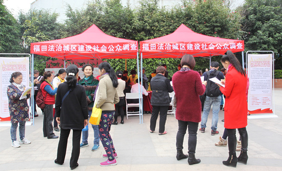 辖区商业中心、写字楼、广场内设立了15个工作点,向社会公众开展问卷调查工作,收集公众对福田法治城区建设的意见和建议。问卷调查结束后,评估组将通过工作数据分析、专家及权威机构点评等方式,运用多维度指标体系分析,实现以评促改、以评促建、以评促管,为法治城区建设工作提供决策参考。