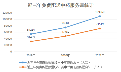 快三平台 社康机构自2019年开始推广应用“互联网+医疗”中医药服务体系,为辖区居民提供了便捷、高效、优质的中医药服务,尤其是在疫情期间,极大地缩减了居民在医疗机构停留时间,“中药代煎、药品配送到家”模式深受居民的欢迎。近三年来,辖区居民对中医药服务需求量逐年大幅上升,2021年度中药饮片及代煎汤剂配送量已突破十万人次。