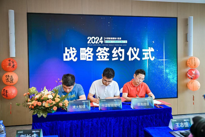 活动推出了基地入驻企业研发生产的卡颂内墙涂料与防水涂料两个系列的新品,对于市场现有的净化甲醛、防水修复等技术进行了多维度的提升,旨在为人们创造一个舒适、健康的生活环境。活动中各位嘉宾进行了主题经验分享,提供了宝贵的市场洞察和实战指导,最终达成了多项战略合作并当场成功签约。