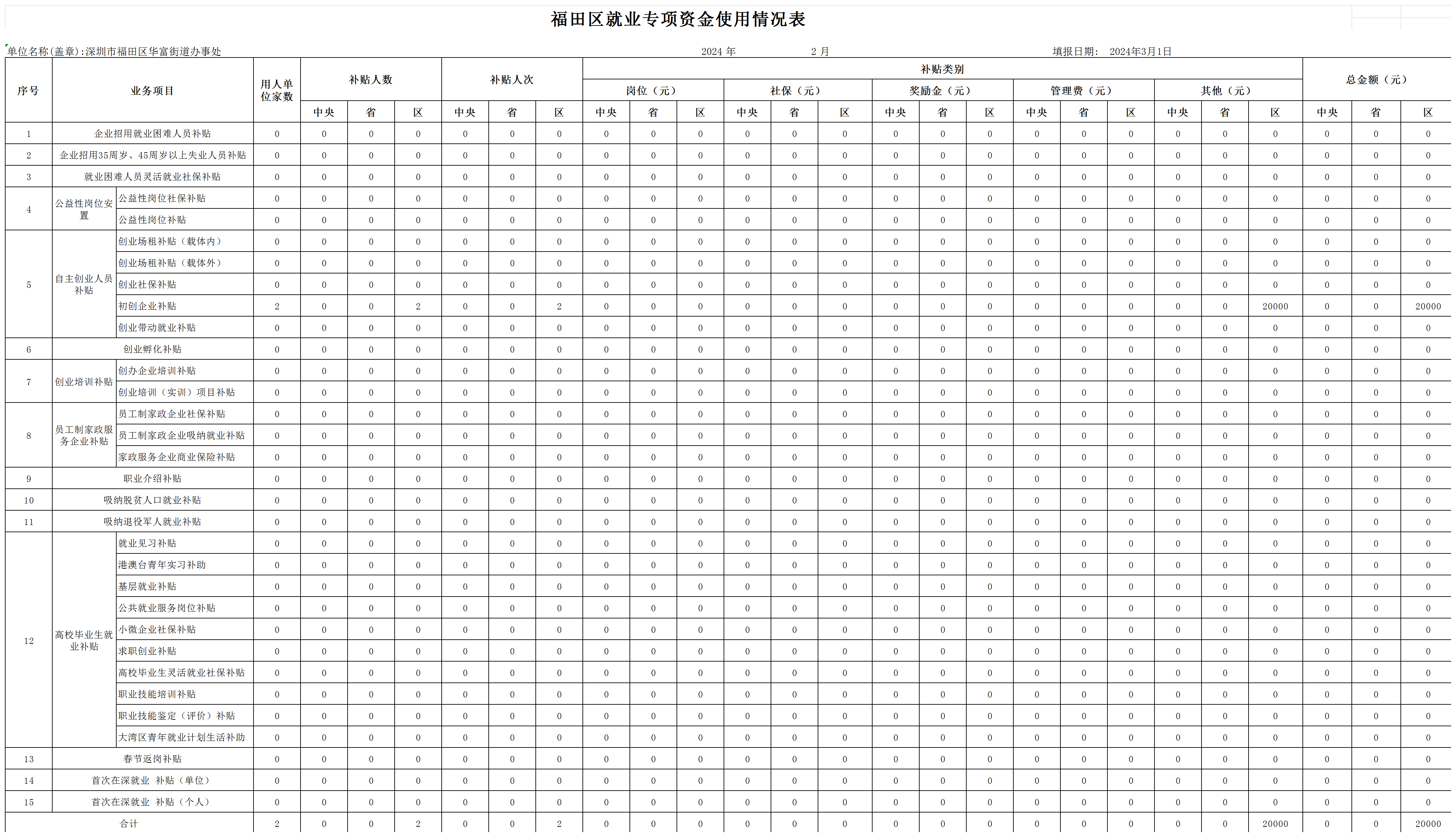 2024年2月快三平台 华富街道就业专项资金使用情况表