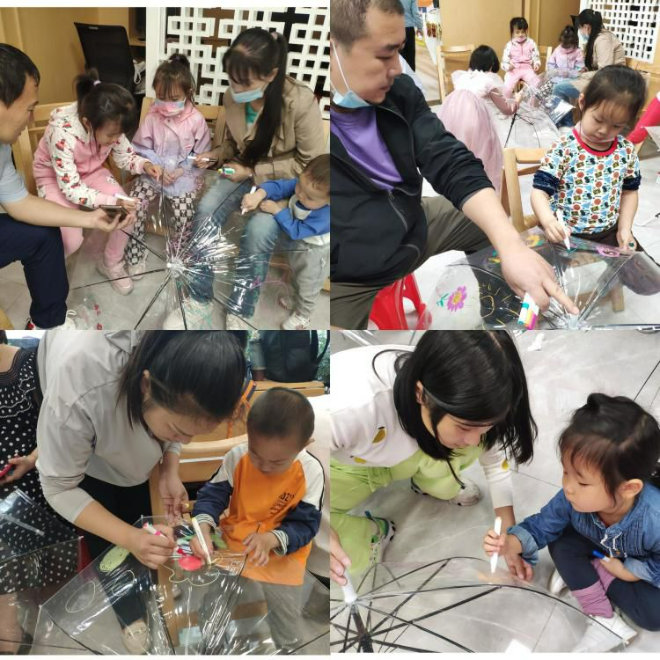 此次亲子阅读包括绘本分享、亲子游戏、亲子互动、亲子手工DIY等多个环节。活动在欢快活泼的热身活动中拉开序幕。在绘本分享环节中,老师声情并茂地分享绘本里的内容,孩子们都踊跃回应。在亲子手工DIY雨伞环节,亲子家庭拿起画笔,一起描绘心中美好的彩虹。居民李女士说:“活动很有意义,我和孩子都很开心。希望多多举办类似的活动。”
