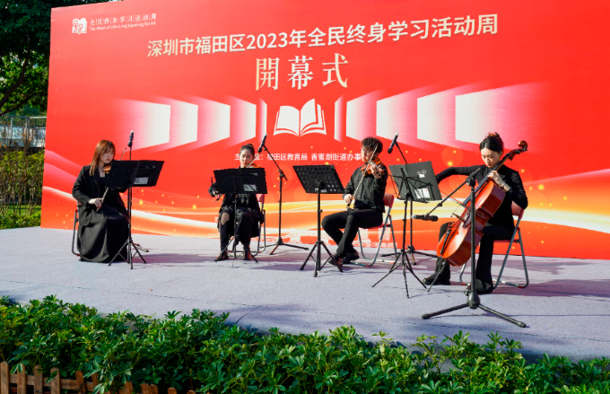 本届活动周开幕式上,还设置了全民终身学习成果展示区,展现福田多样态开展全民学习、经验交流共享以及文化学习成果。