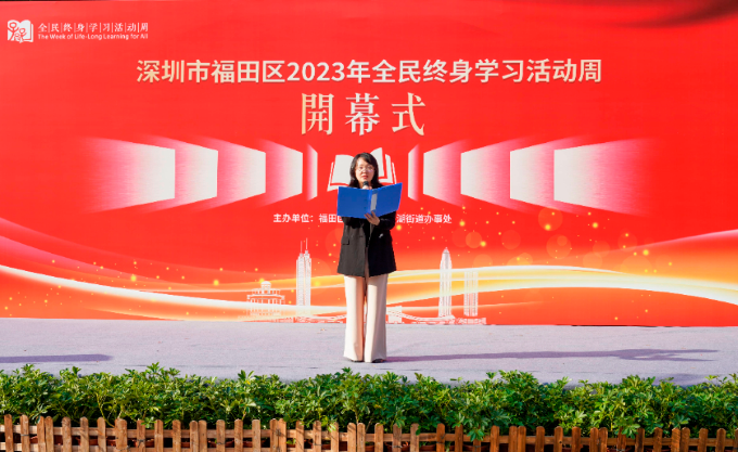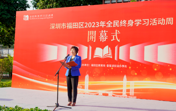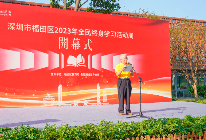 香蜜湖街道是本届活动周开幕式承办方,香蜜湖街道党工委副书记、办事处主任温现青在致辞中表示,香蜜湖街道坚持践行新时代学习观和教育观,努力构建全员学习的社会形态,全方位推动学习型社区建设,倡导“让学习成为一种生活方式”的终身学习理念,让学习成为市民内在需求和既定习惯,在生活的每个角落传递终身学习的理念。