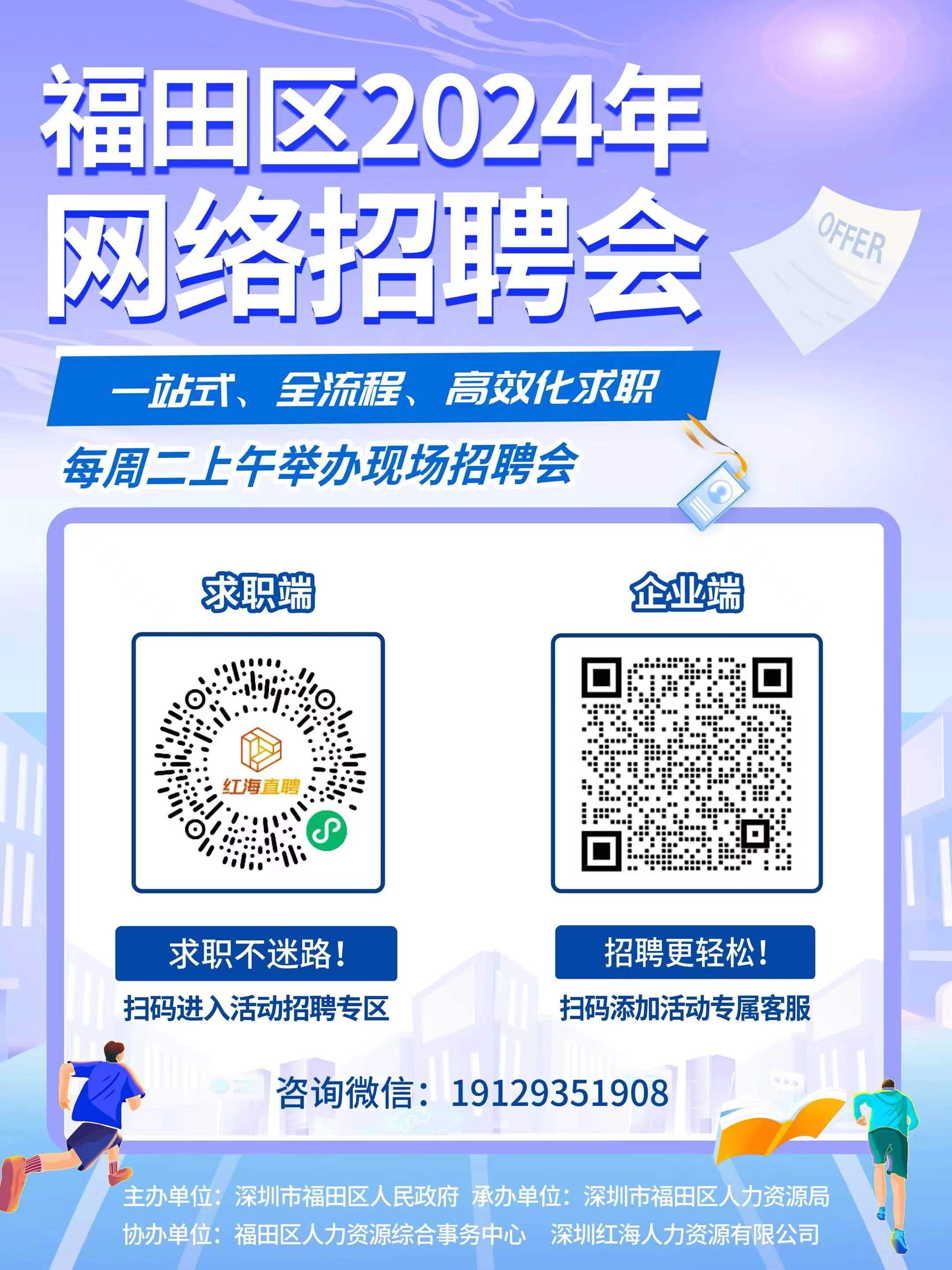 深圳红海人力资源有限公司(红海直聘//www.job131.com/index.html?activityId=b91d7f443c4e4f82b4,#小程序://红海直聘/JpmWmu4jPO2GyQq)共同开展2024年“南粤春暖”暨“春风行动”公益网络招聘活动,为求职者和用人单位提供全方位的公共就业服务平台,欢迎辖区用人单位及广大求职者踊跃参加!