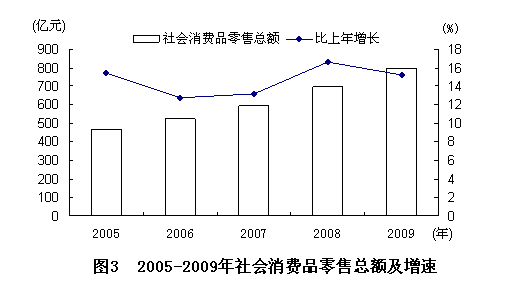 全年完成社会消费品零售总额800.18亿元,增长15.2%。其中,限额以上商业企业消费品零售额390.08亿元,增长14.7%;限额以下商业企业消费品零售额410.10亿元,增长15.7%。
