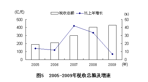 税收总额430.00亿元,增长6.7%。其中,国税收入166.40亿元,增长10.1%;地税收入263.60亿元,增长4.6%。