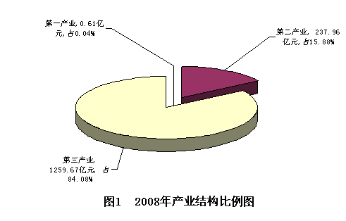 初步核算,全年实现地区生产总值(现价,下同)1498.24亿元,比上年增长10.2%。其中,第一产业实现增加值0.61亿元,增长29.6倍;第二产业实现增加值237.96亿元,下降5.7%;第三产业实现增加值1259.67亿元,增长14.8%。三次产业结构由上年的0.01:20.98:79.01调整为0.04:15.88:84.08。在第三产业中,房地产业下降1.0%,交通运输、仓储和邮政业增长2.7%,批发和零售业增长6.0%,住宿和餐饮业增长13.9%,金融业增长19.6%,其他服务业增长24.3%。高端服务业增加值占第三产业增加值的比重为55.6%。按常住人口计算的人均地区生产总值为125401元(按外管局公布的供计划统计部门使用的汇率计算,折合18365美元),增长9.8%。全社会劳动生产率150365元,增长9.6%。