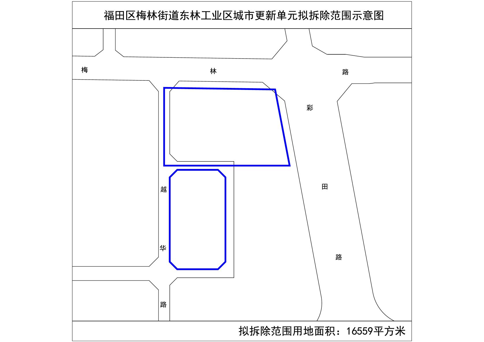 附图:快三平台 梅林街道东林工业区城市更新单元拟拆除范围示意图