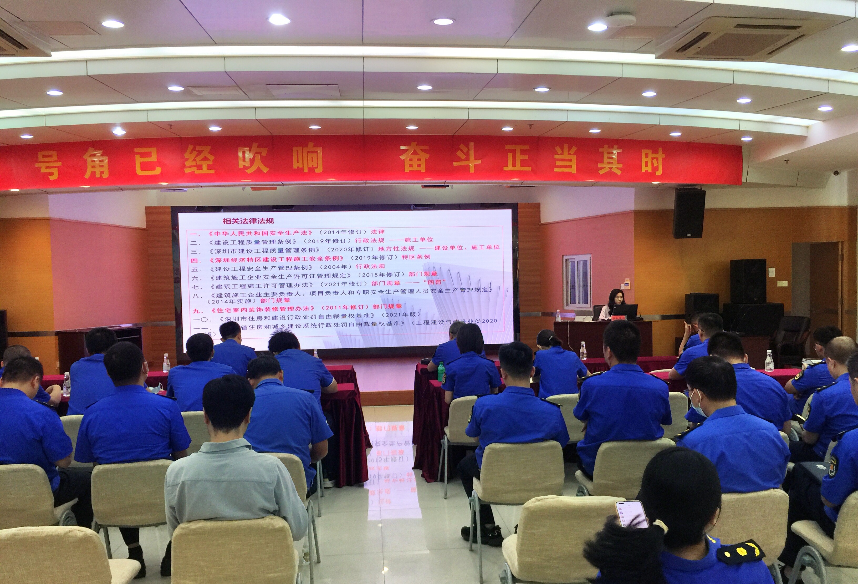 为进一步提高执法队员的执法素养和工作水平,筑牢以人民为中心的执法理念,根据《深圳市城市管理和综合执法局关于新增街道综合行政执法考评项目的通知》要求,6月14日,莲花街综合行政执法队组织开展2023年第二季度第二次“执法大讲堂”活动。大讲堂活动由驻队律师围绕“深圳市小散工程执法要点”为主题进行授课,内容主要包括结合实际案例剖析讲解小散工程概念、职责分工、及处罚依据等并汇合近期案卷评查发现的问题进行讲解,街道综合行政执法队全体工作人员参加培训。