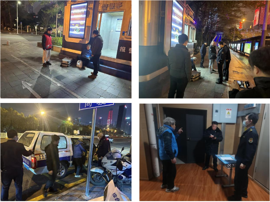 在阖家团圆之际,华富街道执法队巡查人员正一遍又一遍地开展地毯式巡查,寻找需要帮助的受困人员,以“万全之策”保“万无一失”。2月9日晚10时左右,执法人员联合社区工作人员在田面村深南路公安岗亭边发现一名流浪的来深务工人员,当即上前详细询问其身体状况,送去新春慰问,得知其因未购得返乡车票需要救助后第一时间送至附近应急避难场所紧急救援,并为其购得车票,第二天送至车站帮助其返乡,让来深务工人员感受到深圳的温暖。
