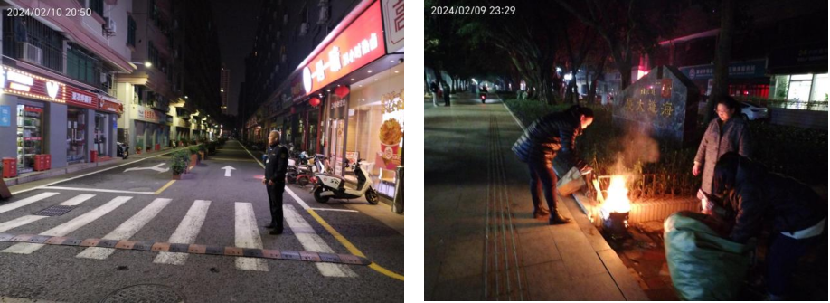 为了落实“百千万工程”,让居民度过一个平安、和谐、幸福的春节,2024年2月9日除夕夜晚,华富街道综合行政执法队队员们坚守岗位,为市民安全过节保驾护航。