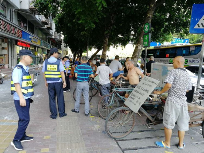 5月21日,全天出动人员90余人次,执法车辆12车次,共清理乱摆卖7宗、占道堆放11宗、清理乱挂晒、乱拉横幅?12宗、整治超门线经营20余宗、规范清理占道共享单车200余辆、暂扣各类违规物品3车。