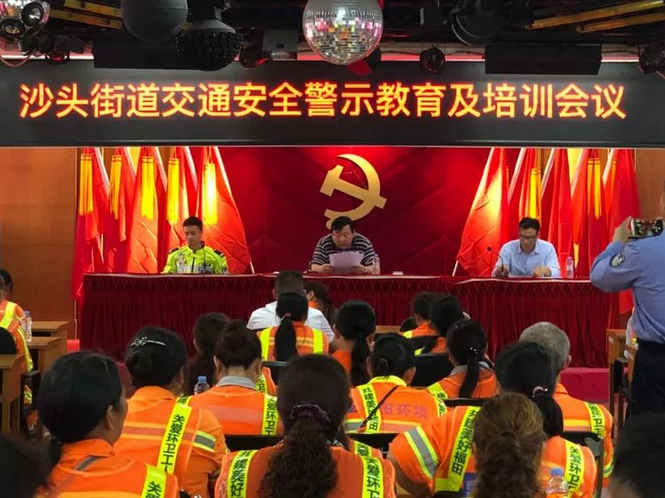 为进一步提高环卫工人的交通安全作业意识,4月4日,沙头街道党工委副书记、办事处副主任许洪铎同志组织召开交通安全警示教育及培训会议,安监科、城管科工作人员,环卫绿化企业员工代表100人参加了会议,同时邀请了福田交警大队红树林中队负责同志莅会。