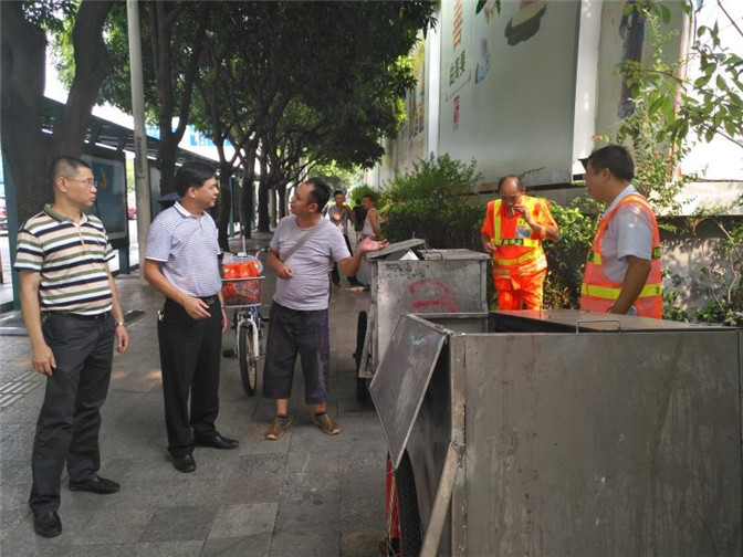 8月21日下午,南园街道党工委黄小平副书记带领挂点科室行走松岭路、深南中路、爱华路、华发南路检查市容环境卫生、安全生产、交通安全等方面工作。一、督促执法队清理松岭路统建楼旁废弃“僵尸”车辆;二、要求保洁公司及时处理垃圾,时刻保持深南中路环境卫生整洁;三、现场对共享单车公司作出要求,加大派遣车辆调度频次,并要求交通协管人员保持人员在岗在位;四、随机抽查一家餐饮企业,对该企业燃气、污水处理情况进行检查,要求该企业对燃气收据盖章、污水乱排放问题进行整改。(安监站 郑镇鸿)
