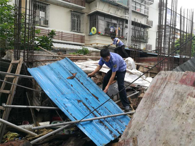执法人员拆除乱搭建的工棚
