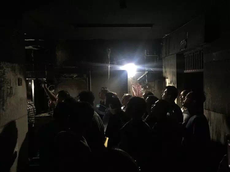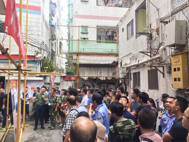 火灾现场,一片片断壁残垣,满地的瓦砾碎片都在向现场人员诉说8月10日发生在这里的一场火灾。上沙股份公司防火办干部向现场人员详细介绍了火灾基本情况。据了解,本次火情疏散过程中,前期街道在上沙集中整治中所打通的消防天面发挥作用,大多数被困群众上天台成功避险,大大降低了火灾风险。