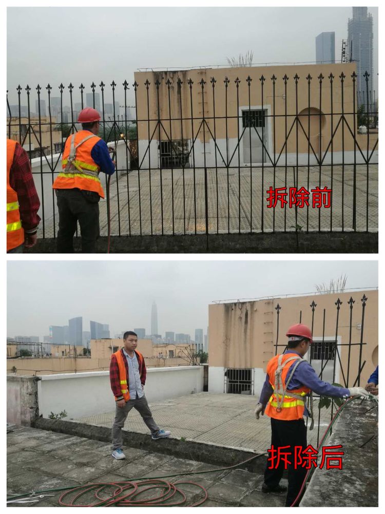 今天拆除华富村西区7、9、13、14、15栋消防通道的上锁铁门23处;天台单元与单元间妨碍疏散的铁栅栏8处;天台违规搭建彩钢板房、铁皮棚、铁架220余平方米、天台楼梯间阁楼23余平方米。
