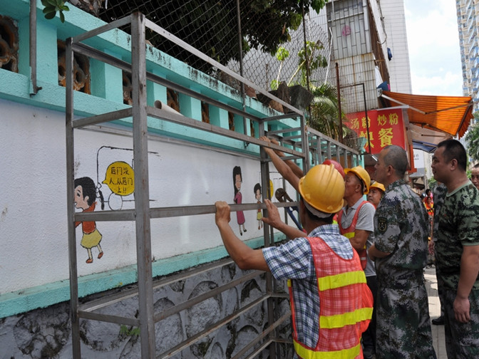 新狮靠近新洲、红荔路,生活、交通方便,但基础设施相对落后,外来流动人口众多,管理难度大,乱张贴、乱堆放、乱丢垃圾、乱涂画、超门线经营、占道经营、无证烧烤等违法现象久治不绝。整治行动中,共清理超门店经营27宗,清理灯箱广告8个,清理乱堆放12处,暂扣铁架2个。