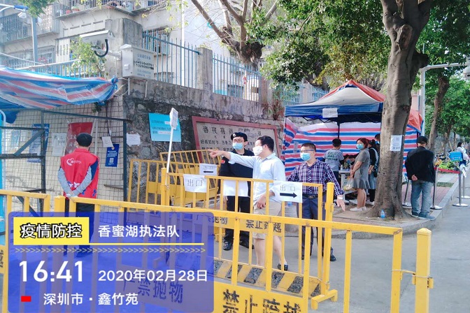 香蜜湖街道执法队检查竹园小区防疫防控工作