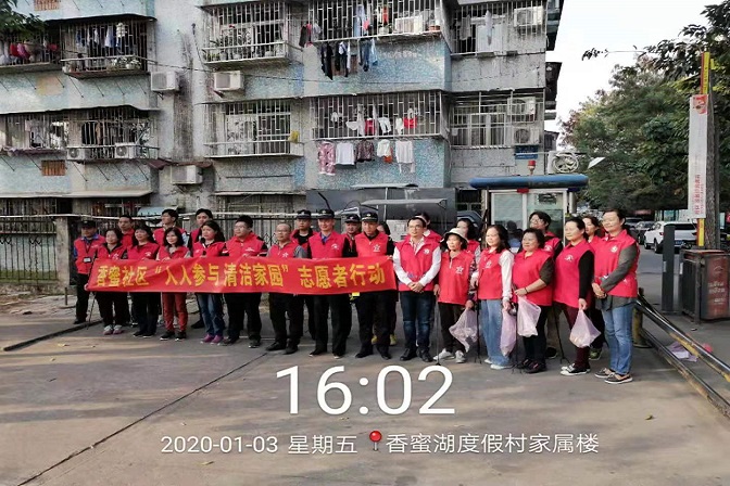 2020年1月3日下午,为进一步贯彻落实市容环卫大城管会议精神,香蜜湖街道执法队、香蜜社区党委联合社区党员志愿者、居民义工、网格部工作人员共同开展了“人人参与清洁家园”活动。整个活动氛围活跃,各位成员对香蜜湖家属楼及周边路面卫生、绿化带死角等进行了大清扫,让周边环境展现出干净整洁的面貌;更重要的是,能用实际行动去影响、去带动更多的人关注身边环境、爱护身边环境,为社区营造文明和谐、整洁干净的环境。