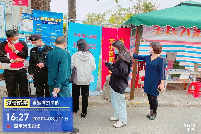 3月11日下午,香蜜湖街道执法队检查深南汽配市场疫情防控具体落实工作。检查内容要点: