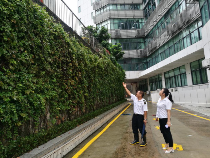 物管值守人员巡查边坡