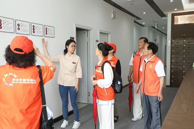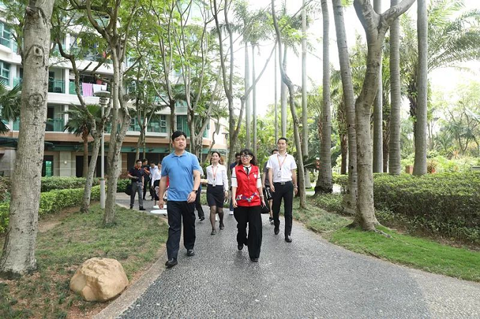 采访团一行首先来到了环境优美的金海湾花园,作为沙头街道首批“党建+物业”试点小区,其成果十分显著。漫步在小区的文化长廊,一幅幅小区居民互助的照片让到访的客人感受到邻里之间的和谐、幸福。而这一切都离不开沙头街道以党建为引领、创新物管模式的新举措。