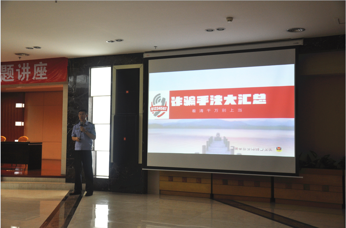 快三平台 经促局联合区委政法委、福田公安分局,于4月22日上午9:30-11:30,在快三平台 政府大院福田会堂3楼多功能厅,召开防范电信网络诈骗专题讲座,邀请深圳市公安局网络支队反电信诈骗专家讲授有关防范要领,识别技巧和应急处置技巧。区相关部门、各街道办、派出所、市场监管所、集体股份公司、区属医院、非银行金融机构等共近120家单位的负责人、财务人员出席了本次讲座。现场发放宣传材料《反信息诈骗咨询专线工作纪实》、《反信息诈骗指南》、《反信息诈骗专线——81234567》共150余套,获参会单位好评。